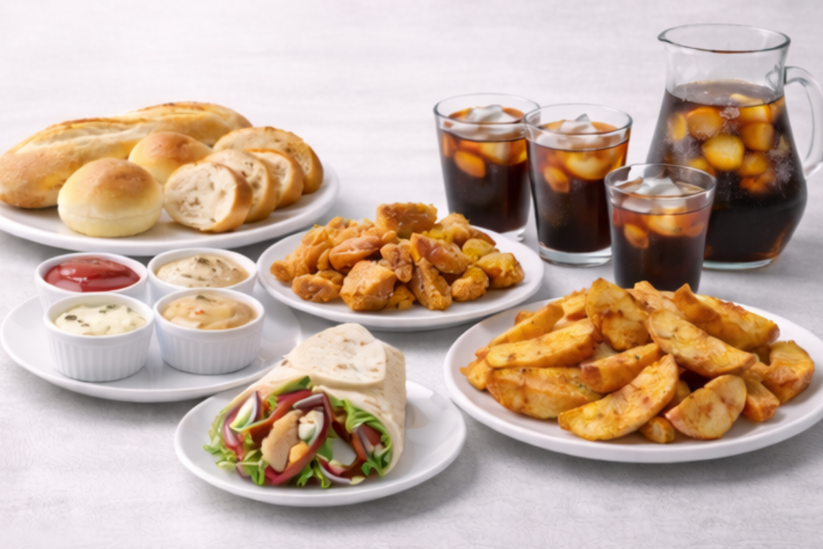 Menú compuesto por  4 platos principales, 4 acompañamientos y 4 bebidas.